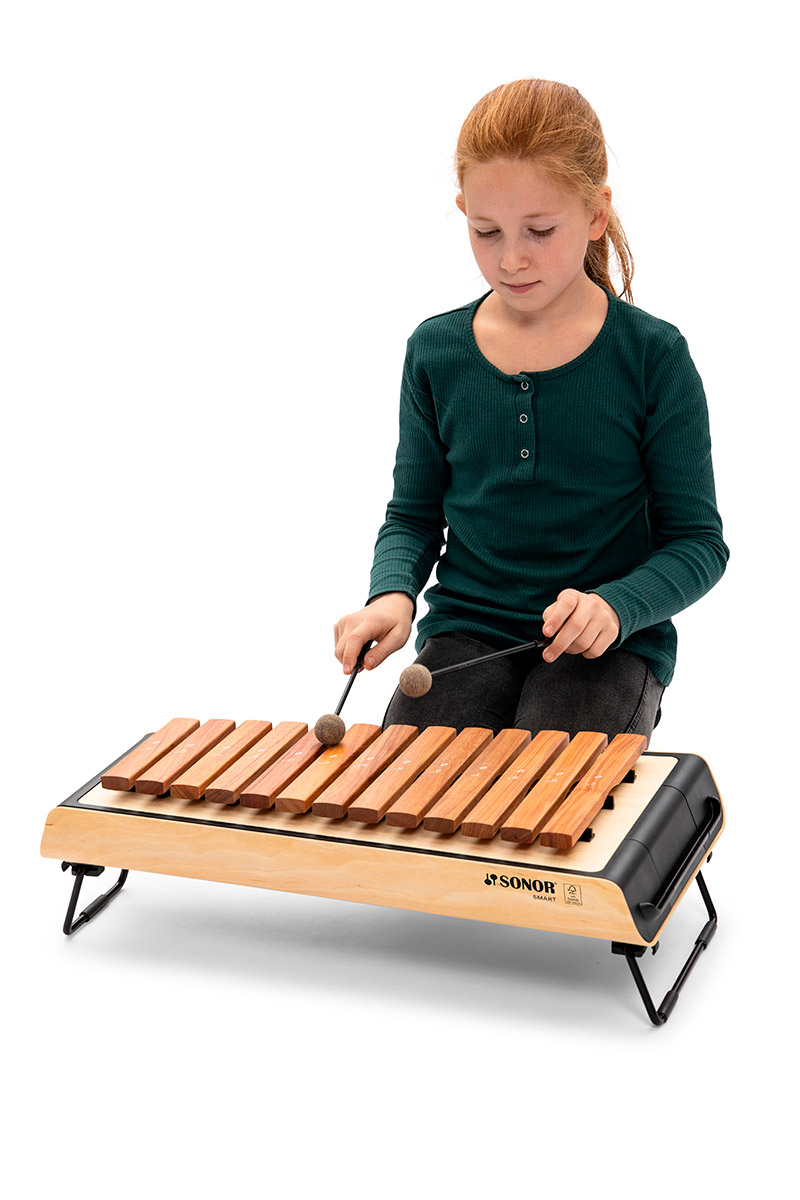 SMART setzt innovative Maßstäbe hinsichtlich Klang, Funtionalität und Design. Erst nach langjähriger wissenschaftlicher Forschung war es möglich SONORs Klangansprüche in einem leichten und kompakten Design zu verwirklichen und mit einem hohen Maß an Funktionalität auszustatten. Abbruchsichere Klangplatten, klappbare Füße, die Möglichkeit zum Stapeln der Instrumente und eine integrierte Aufbewahrung der Klangplatten und Schlägel ermöglichen einen einfachen Transport, eine unkomplizierte Lagerung und einen optimalen Spielkomfort. Die optimierten Resonanzräume und die präzise gestimmten Klangplatten aus Aluminium, Palisono oder Pao Rosa in bewährter SONOR-Qualität bieten gleichzeitig ein hervorragendes Klangerlebnis.